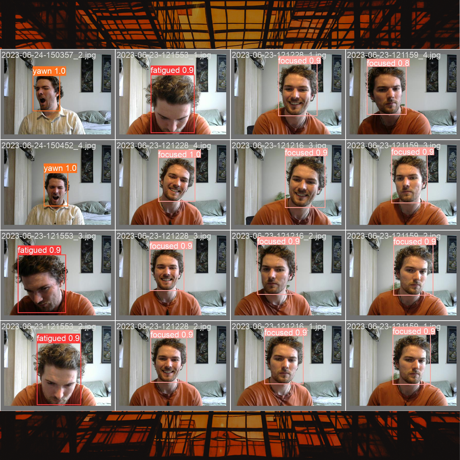 For my Computer Vision course, I developed a realtime program to detect student focus and fatigue using AI deep learning. The AI operates on a local GTX970 graphics card and does not require special hardware. Built with PyTorch and the YOLOv5 object detection algorithm, the model was trained on labelled images of focused and fatigued states, including posture and yawning. Project Link.
